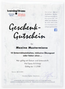 Hier 2. Beispiele für Geschenk- Gutschein für alle Instrumente und Tontechnik :