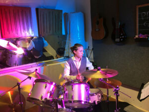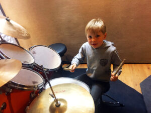 Elias mit seiner Leihgitarre :